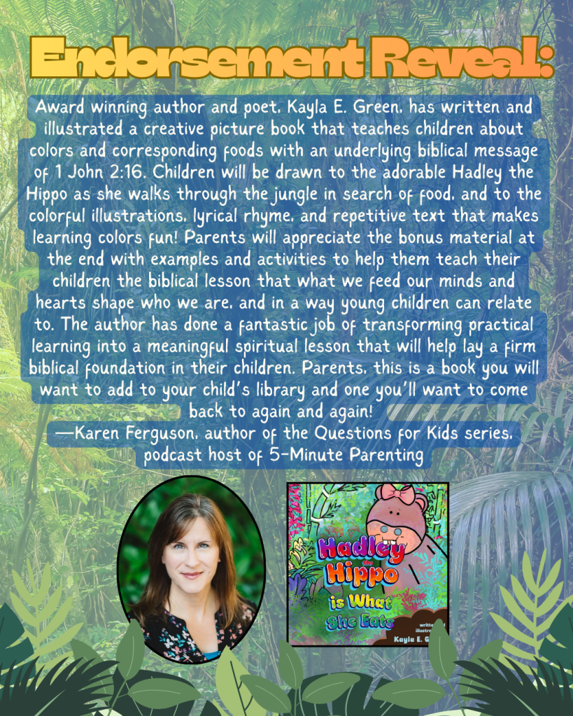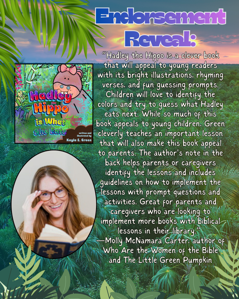 Hadley the Hippo is hungry, and she won’t rest until she finds something to eat. But as she walks through her jungle home, she finds that the snacks in the jungle have an odd effect on her-they change her color! Still, Hadley munch, munch, munches her way through the greens, blue, purples, oranges, reds, and yellows of the jungle, hoping to finally satisfy the rumbling in her tummy. Along the way, she finds that it really does matter what you consume.